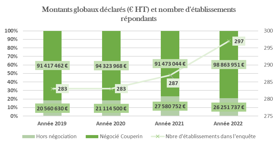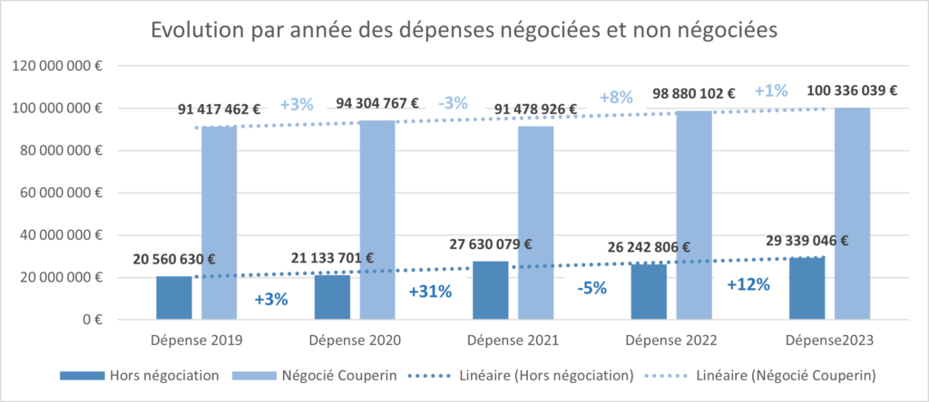 - L’exhaustivité des réponses est variable d’une année à l’autre pour un même établissement notamment la déclaration du montant de la dépense « hors négocié ».