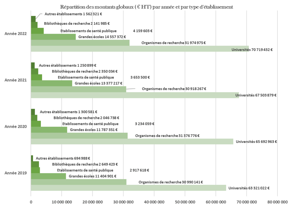 Le consortium Couperin, mandaté par le MESR, assure chaque année la collecte de ces données. Les montants recueillis sont ensuite publiés en libre accès sur la plateforme data.gouv.fr.
