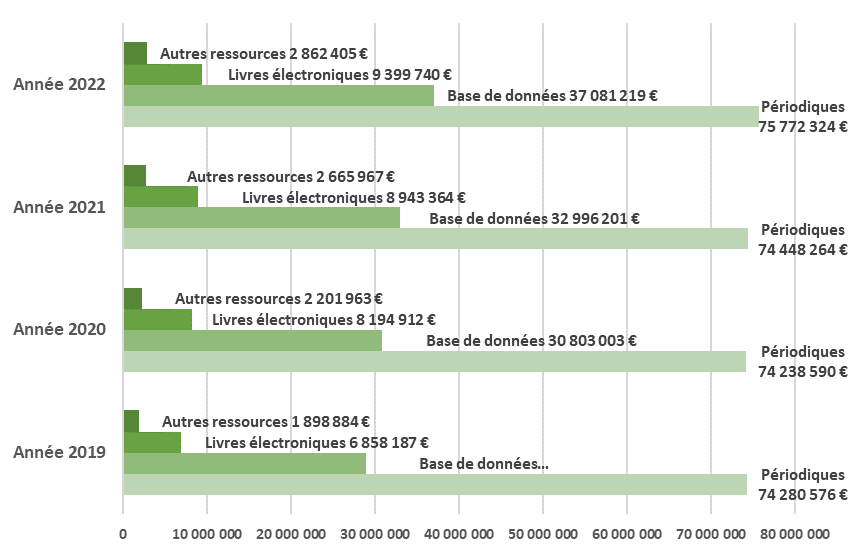Sont ainsi pris en compte différents types de produits, tels que les revues électroniques, les livres électroniques ou encore les bases de données.