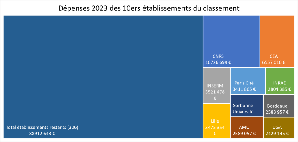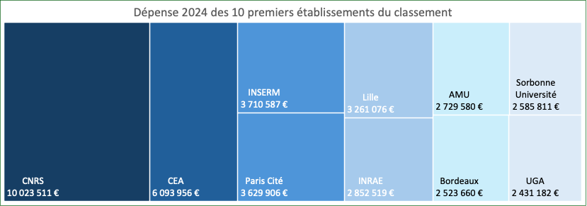 Top 10 des dépenses par établissement, tout type de produits confondus (2024)