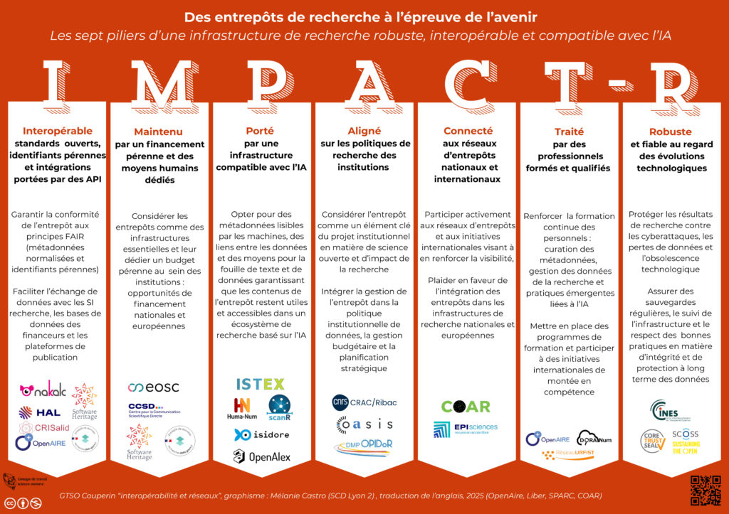 Intitulé IMPACT-R, ce poster propose une synthèse des sept piliers d’une infrastructure d’entrepôt pérenne, interopérable et compatible avec les évolutions technologiques.