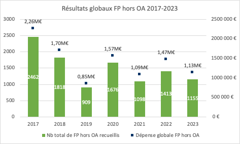 | 2023 | 70 | 1155 | 1,13M€ | 984€ |