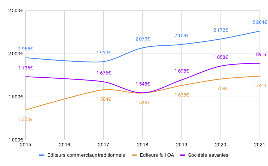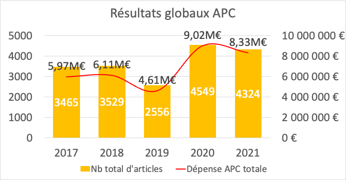 - les articles processing charges (APC), autrement dit les frais de publication pour parution dans les revues entièrement en accès ouvert ou dans les revues dites hybrides proposant une option « open access »,