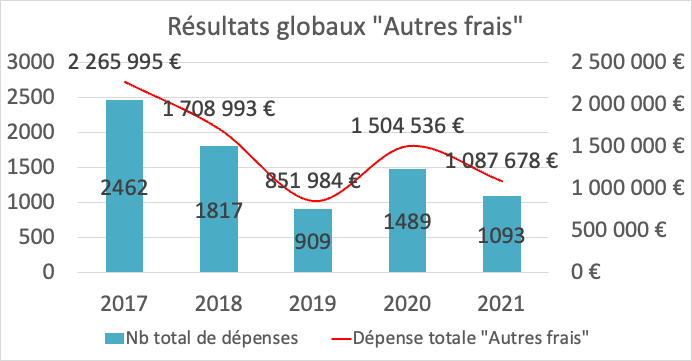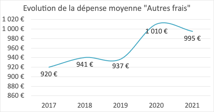 | Année | Nb de répondants | Nb total de dépenses | Dépense totale « Autres frais » | Dépense moyenne « Autres frais » |